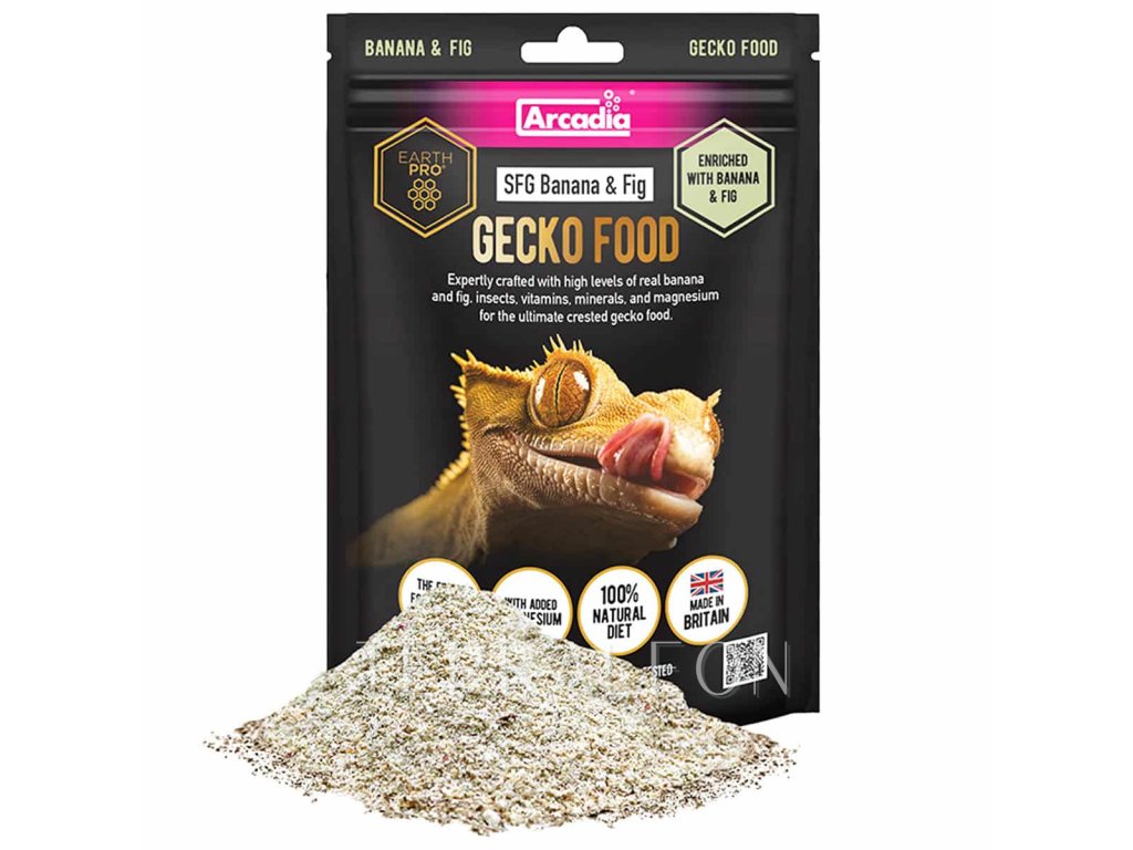 Arcadia EarthPro SFG Banana & Fig je kompletní, 100% přírodní a nutričně vyvážené krmivo vytvořené speciálně pro všežravé a plodožravé druhy plazů, jako jsou pagekoni (např. Rhacodactylus, Correlophus), phelsumy, scinkové a další druhy ještěrek. Varianta Banana & Fig navíc přináší atraktivní chuť banánů a fíků, kterou si vaši plazi zamilují.