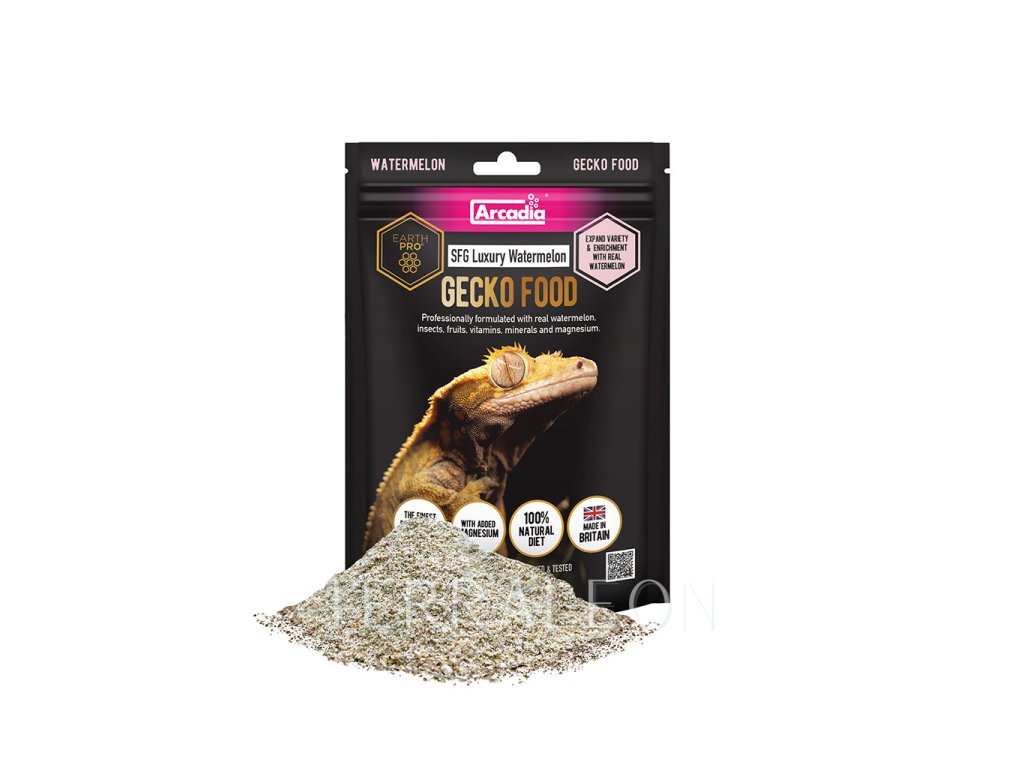 Arcadia EarthPro SFG Luxury Watermelon je kompletní, 100% přírodní a nutričně vyvážené krmivo vytvořené speciálně pro všežravé a plodožravé druhy plazů, jako jsou pagekoni (např. Rhacodactylus, Correlophus), phelsumy, scinkové a další druhy ještěrek. Varianta Luxury Watermelon navíc přináší atraktivní chuť melounu, kterou si vaši plazi zamilují.