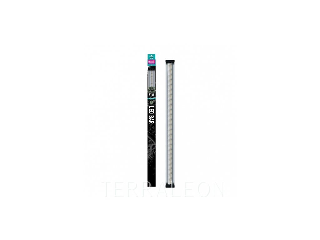 Použitím LED diod s velmi specifickým designem bylo vytvořeno osvětlovací těleso, které projektuje velmi mnoho viditelného světla s vysokými hodnotami PAR. JungleDawn-LED Bar velmi dobře napodobuje přirozené viditelné světlo (6200 Kelvinů) a je zvláště vhodný pro osvětlování rostlin, aniž by byly použity nežádoucí červené a modré diody. Jako takové má těleso JungleDawn-LED Bar výdej světla s vysokými hodnotami PAR, vysoké procento PUR, vysoké CRI a nevydává žádné nafialovělé světlo. Pozor! Tento typ LED osvětlení neposkytuje UVB záření!