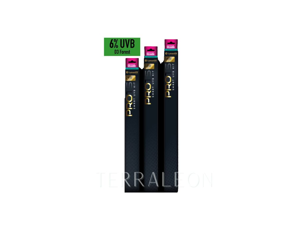 LumenIZE je nová řada svítidel od přední značky Arcadia. Tato vylepšená zářivková svítidla T5 osazená UVB trubicí navazují na svého oblíbeného předchůdce Arcadia PRO T5 UVB Kit. LumenIZE se kromě mnoha vylepšení zaměřuje především na co nejvěrnější napodobení přirozených podmínek a na úsporu elektrické energie. Zlepšení energetické účinnosti je dosaženo díky možnosti stmívání přes mobilní aplikaci. Kromě úspory energie máte možnost zvířatům poskytnout pozvolné rozsvěcení a zhasínání světel. Předcházíte tak nepříjemnému náhlému rozsvěcení a zhasínání. Navíc mají přirozené změny svítivosti vliv na celkové zdraví plazů, jejich žravost, hormonální funkce a mnoho dalšího. Pro dosažení nejlepšího výsledku doporučujeme kombinovat LumenIZE PRO T5 UVB Kit se zdrojem denního světla Arcadia LumenIZE Jungle Dawn LED BAR.