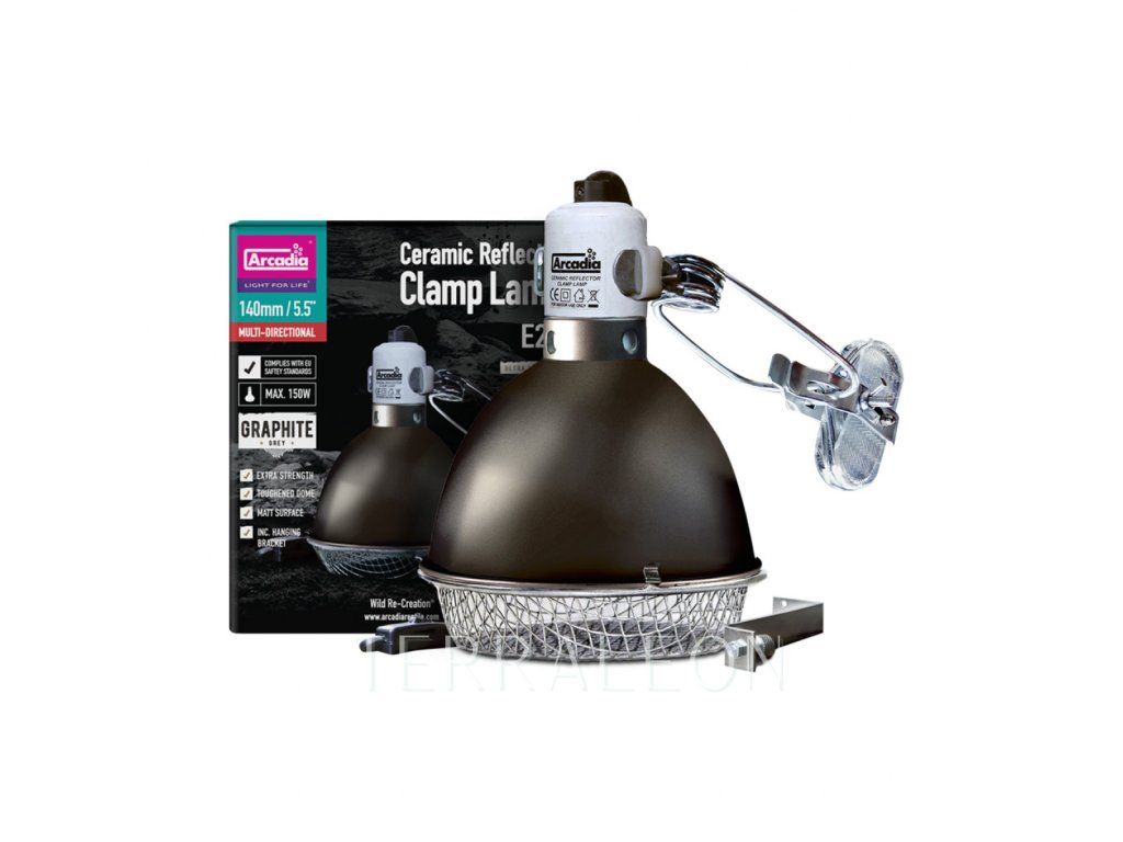 Jedná se o plně vybavenou sadu obsahující vše potřebné k bezpečnému používání žárovek a tepelných zářičů. Tato stylová sada zajišťuje bezpečí chovaným zvířatům i chovateli, navíc chrání lampu uvnitř před poškozením. Větrací otvory ve vrchní části reflektoru zajišťují dostatečné odvětrávání. Clamp Lamp je vybavený odolnou keramickou objímkou s paticí E27. V případě použití kompaktní zářivky je značnou výhodou zesílení dosahu UVB/UVA záření a množství vyzařovaného světla díky reflektujícímu povrchu uvnitř reflektoru.
