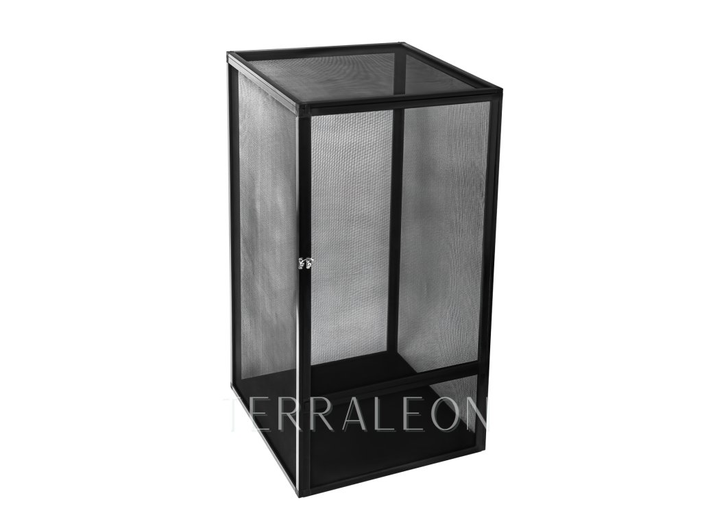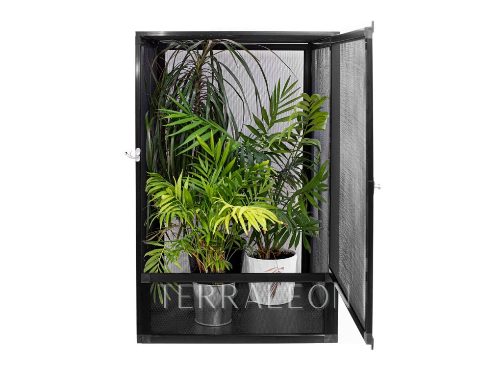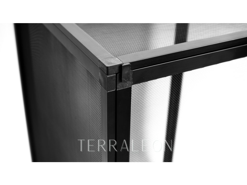 Flexária se skládají z hliníkového rámu a ocelového pletiva, které tvoří všechny stěny, strop i dvířka. Dno je vyrobeno z pevného PVC materiálu a pro snadné čištění je na něm volně ložená podložka. Rám i pletivo jsou v černé barvě.
