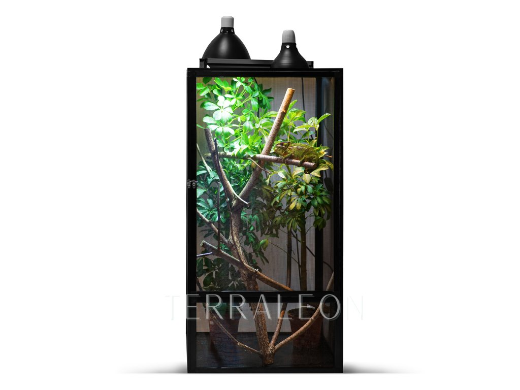 Flexária se skládají z hliníkového rámu a ocelového pletiva, které tvoří všechny stěny, strop i dvířka. Dno je vyrobeno z pevného PVC materiálu a pro snadné čištění je na něm volně ložená podložka. Rám i pletivo jsou v černé barvě.