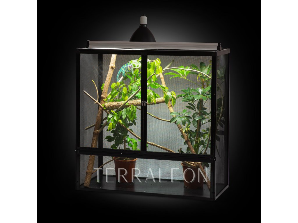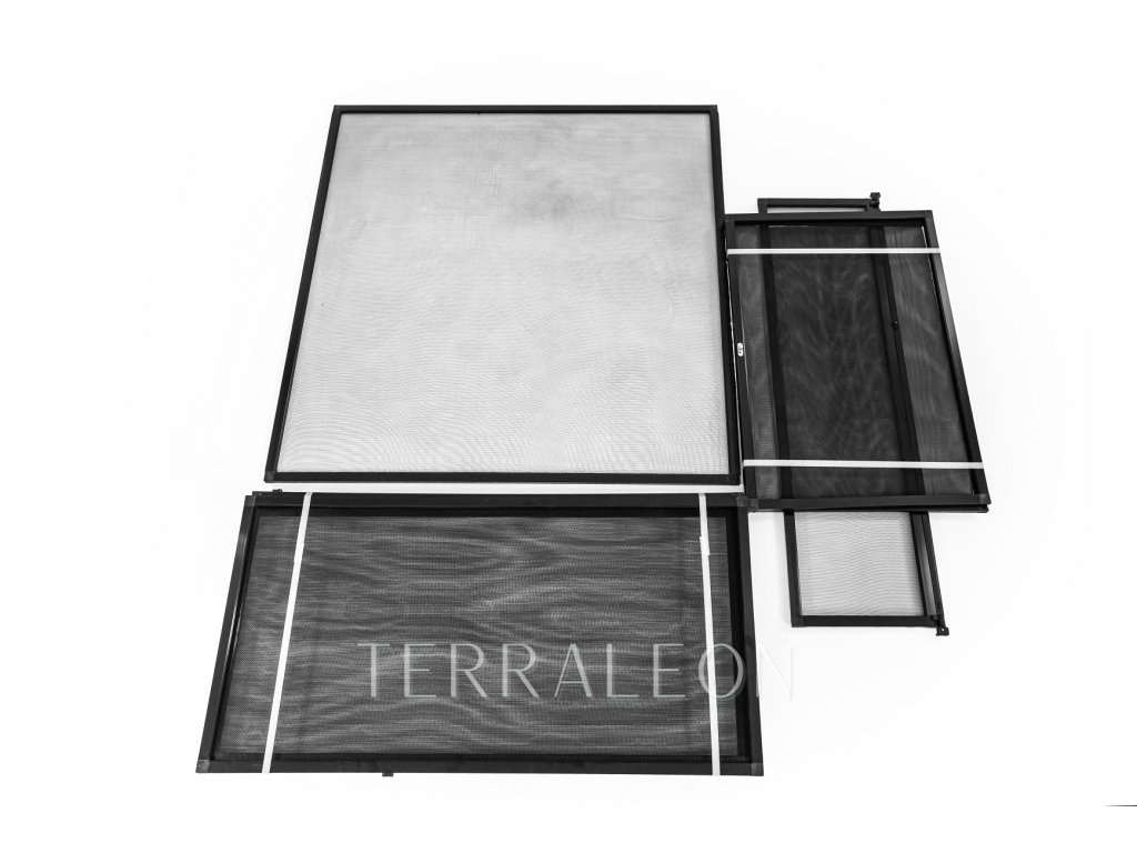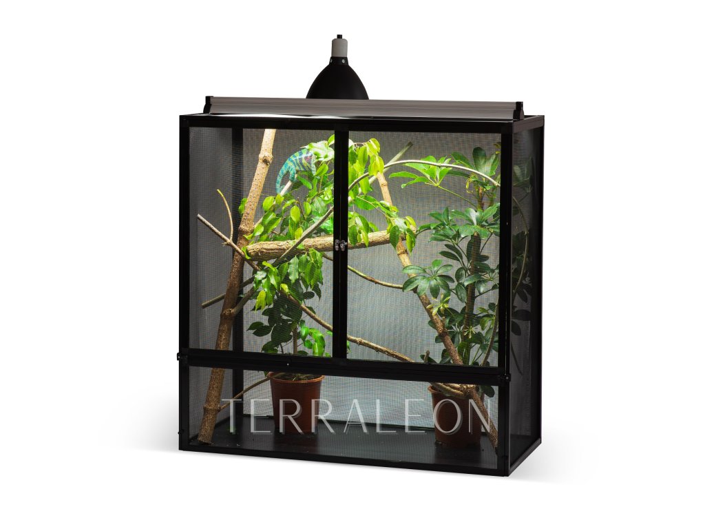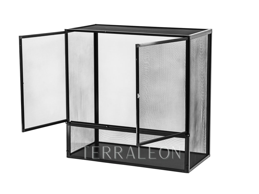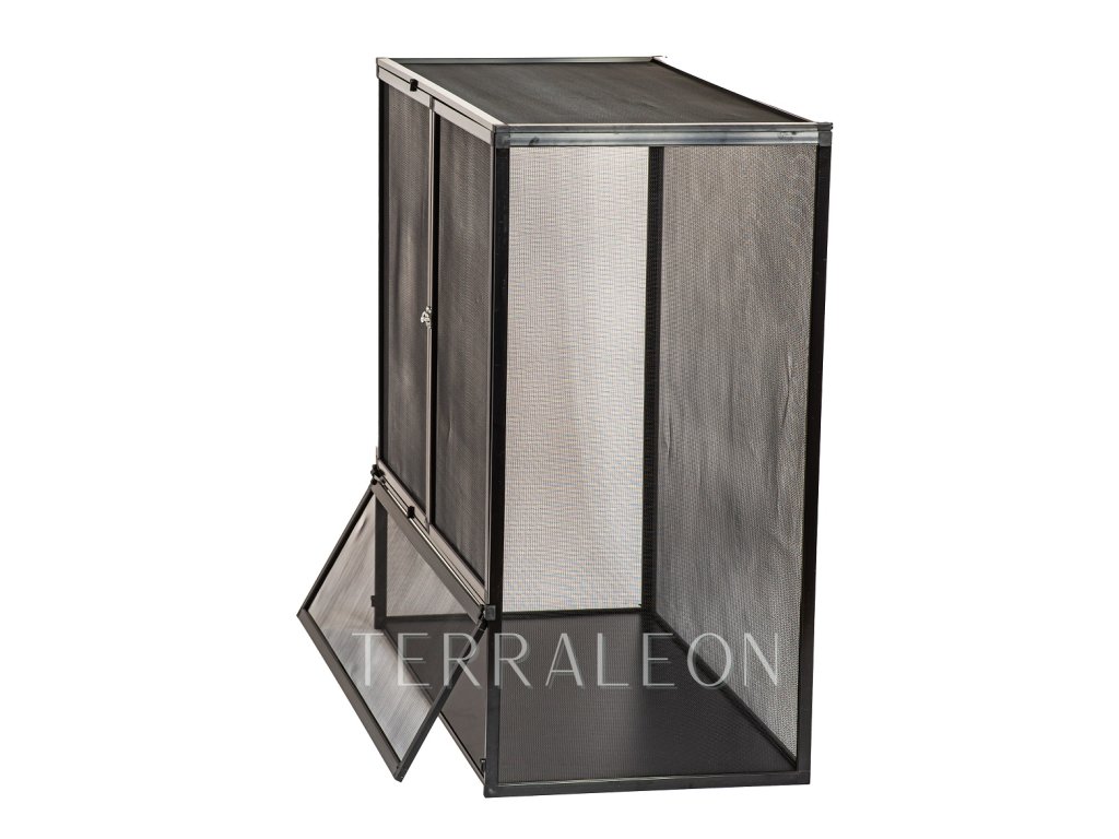 Flexária se skládají z hliníkového rámu a ocelového pletiva, které tvoří všechny stěny, strop i dvířka. Dno je vyrobeno z pevného PVC materiálu a pro snadné čištění je na něm volně ložená podložka. Rám i pletivo jsou v černé barvě.