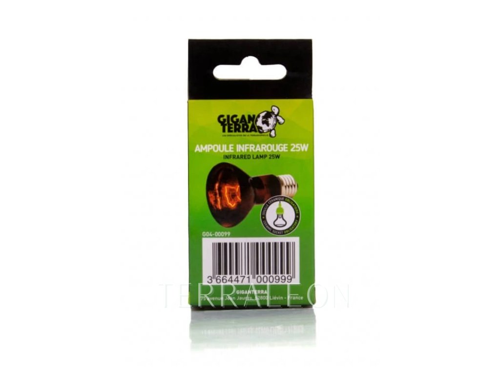 GiganTerra Infrared Lamp je bodová výhřevná infračervená žárovka, která slouží k vytváření lokálních výhřevných míst v teráriu. Ve velkých teráriích můžete vytvořit i několik různých míst pro vyhřívání.