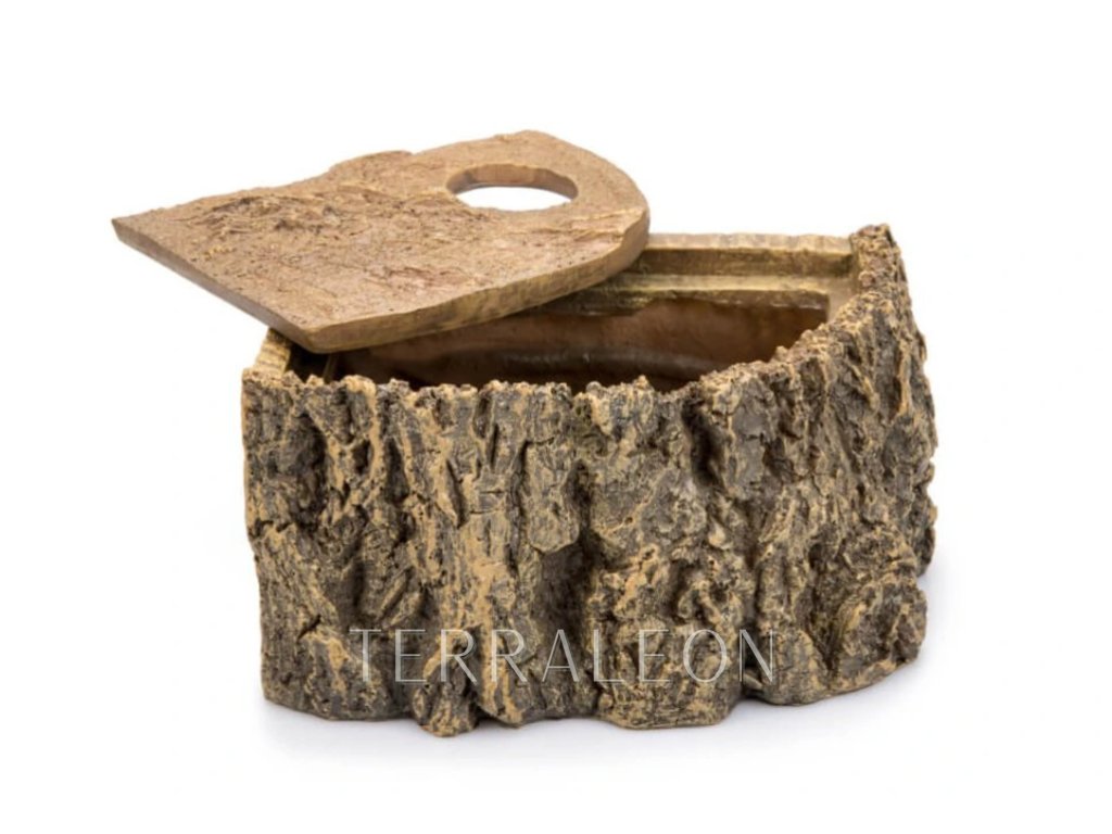 Kvalitní rohové kladiště a úkryt v jednom pro menší druhy plazů (např. gekončík noční, leguánek obojkový, čukvala, trnorep). Poskytuje místo pro šplhání a odpočinek. Odnímatelné víko umožňuje snadnou kontrolu zvířata a vajec. Hlavní předností je kvalitní zpracování a víceúčelové využití.