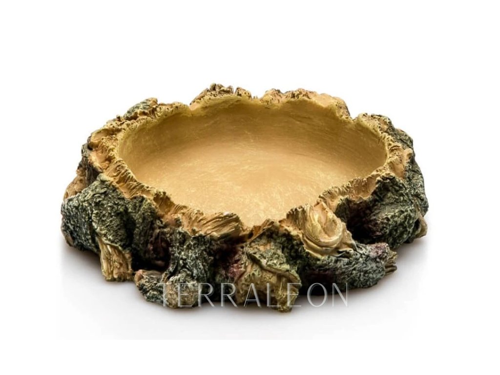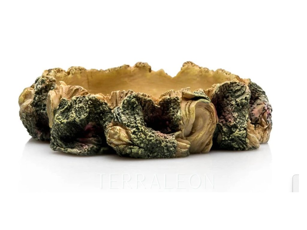 Miska do terária v přírodním vzhledu vhodná na vodu. Misku lze použíti i na krmení terarijních zvířat rostlinnou potravou nebo menšími druhy červů.