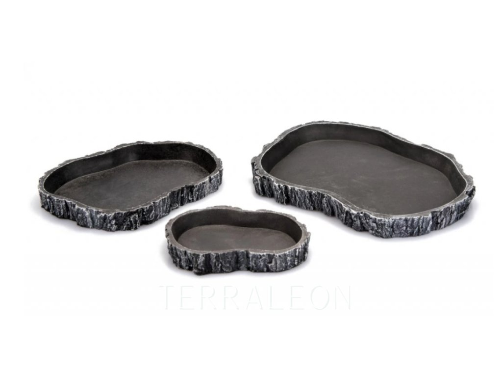 Terarijní miska v přírodním vzhledu vhodná na krmivo nebo vodu. Ideální pro želvy a krátkonohé ještěry, kteří nemají problém překonat nízký okraj misky.