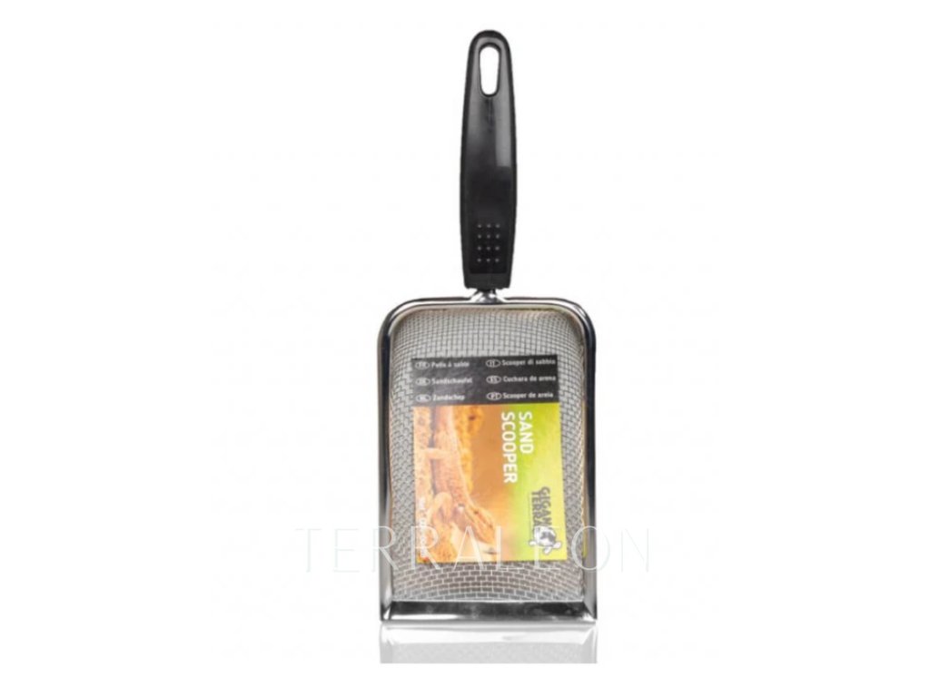 Lopatka na trus z kvalitní nerezové síťoviny s plastovou rukojetí. Lopatka je skvělým pomocníkem při odstraňování trusu a nečistot z terárií pouštního typu. Při prosévání zůstávají větší nečistoty na lopatce, zatímco písek propadne zpět do terária. Plastová rukojeť zajišťuje snadnou manipulaci. Lopatka je navržena tak, aby bylo snadné čištění i v rozích terária.