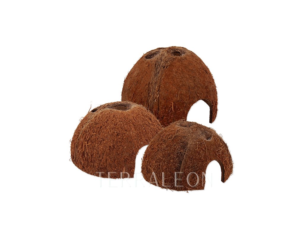 Přírodní kokosová skořápka vhodná jako dekorace do terária nebo jako úkryt pro menší druhy plazů, hlodavce (křeček, myš), pavouky, škorpiony a další bezobratlé.
