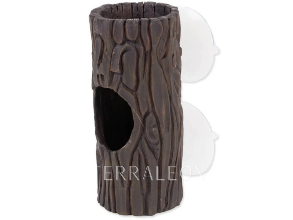 Stylová a praktická dekorace do terária pro plazy a obojživelníky v designu kmene stromu. Díky dvěma silným přísavkám na sklo snadno a bezpečně připevníte dekoraci na skleněnou plochu, což umožňuje efektivní využití prostoru. S jejím přirozeným vzhledem dokonale zapadne do každého terária a zároveň poskytne úkryt a vyvýšené místo pro pozorování. Dekorace je vhodná především pro stromové druhy plazů a obojživelníky.