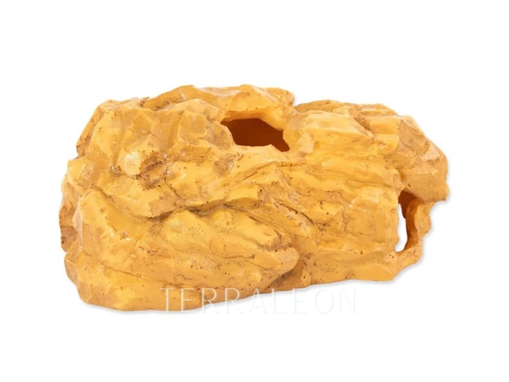 Tato dekorace kombinuje úkryt a vyvýšené místo pro pozorování či výhřev. Jeskyni můžete umístit přímo na substrát, zakomponovat do reliéfu pomocí terarijních substrátů, nebo zavěsit na skleněné stěny terária pomocí přiložené samolepící úchytky, čímž efektivně využijete prostor. Zavěšení je ideální pro stromové druhy, které ocení vyvýšenou plochu. Vnitřní prostor je rozdělen přepážkou s otvorem, která vytváří útulné místo pro odpočinek vašich zvířat.