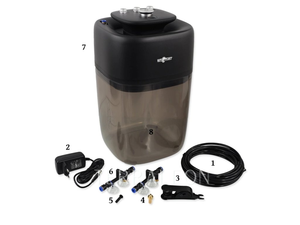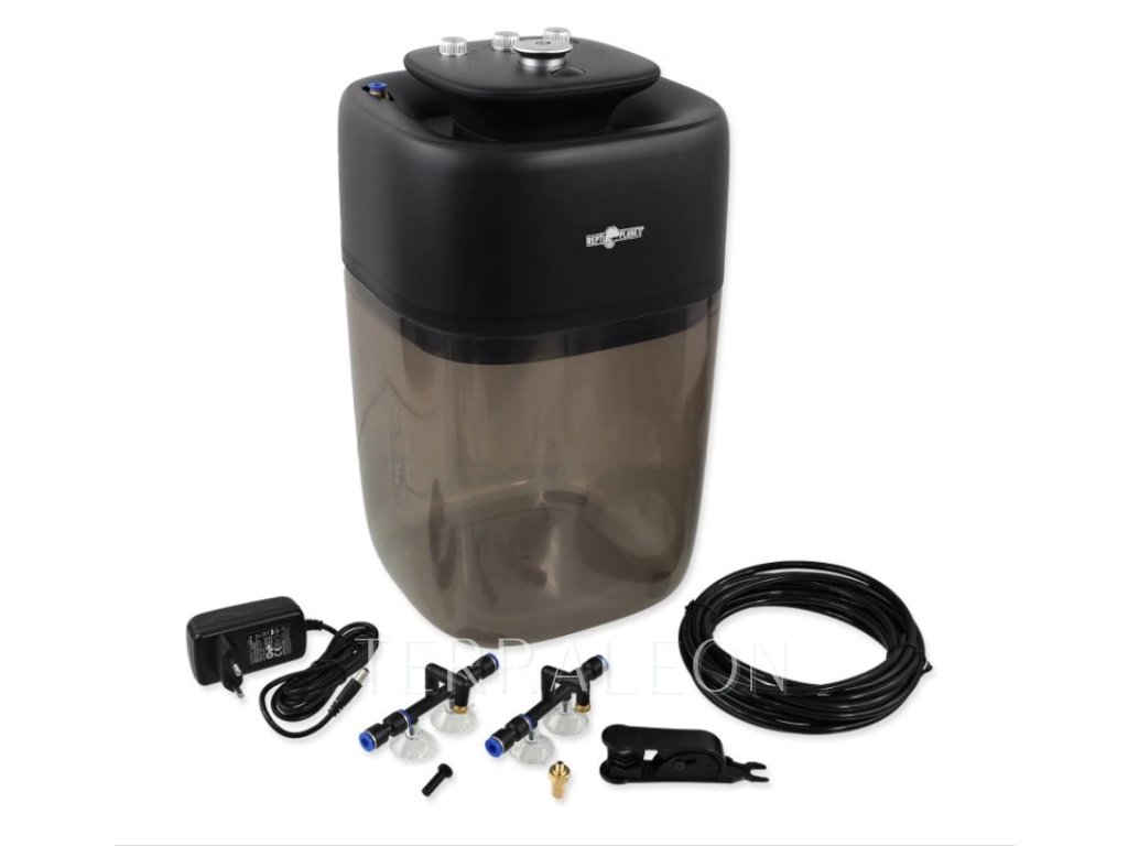 Vysokotlaké rosící zařízení k automatizovanému zavlažování terária. Simuluje prostředí a vlhkost deštného pralesa při chovu plazů v teráriu. Zařízení je vybaveno časovým ovladačem, pomocí kterého lze nastavit čas rosení dle vlastní potřeby. Kromě časového ovladače je na hlavní jednotce umístěn ovladač intenzity rosení.