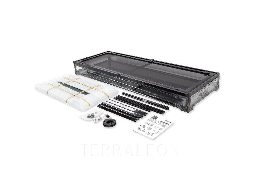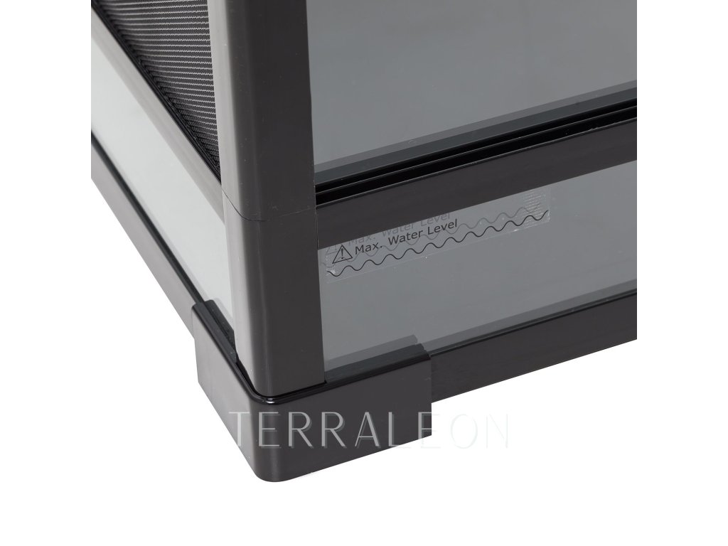 Terária jsou vybavena horním a spodním plastovým rámečkem, který umožňuje stohování terárií a umístění topných desek přímo na vnější stranu spodní skla.