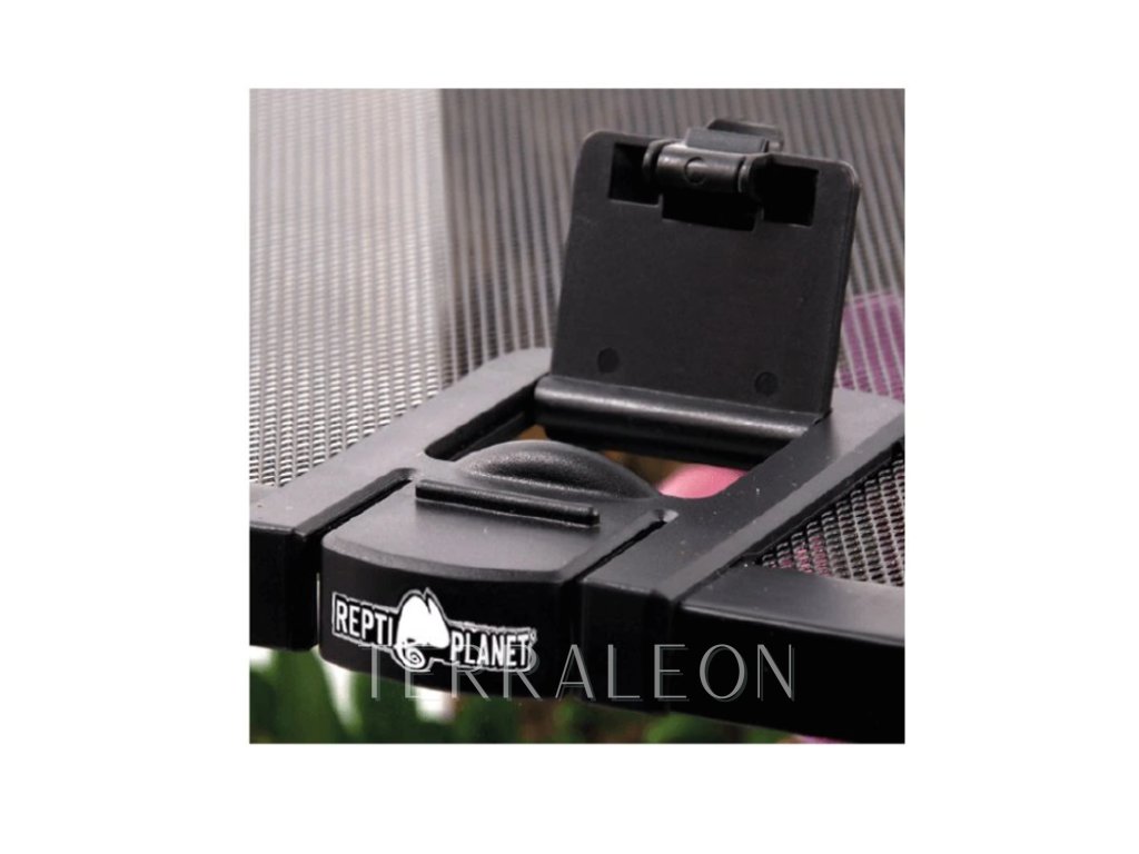 Otevírání vrchního víka je vybaveno posuvným mechanismem. Konstrukce víka zabraňuje samovolnému otevření terária a vždy po uzavírání terária se přesvědčte, že je víko správně dovřené (pojistná západka se zacvakne automaticky při úplném dovření vrchního krytu).
