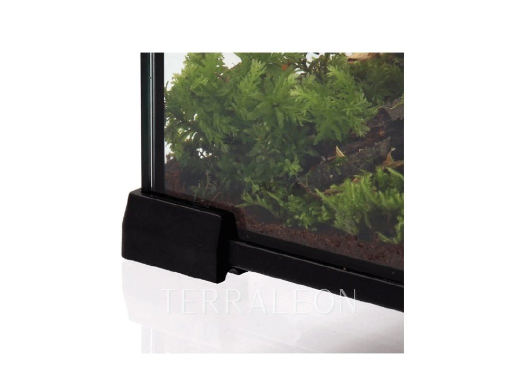 Terária jsou vybavena horním a spodním plastovým rámečkem, který umožňuje stohování terárií a umístění topných desek přímo na vnější stranu spodní skla.