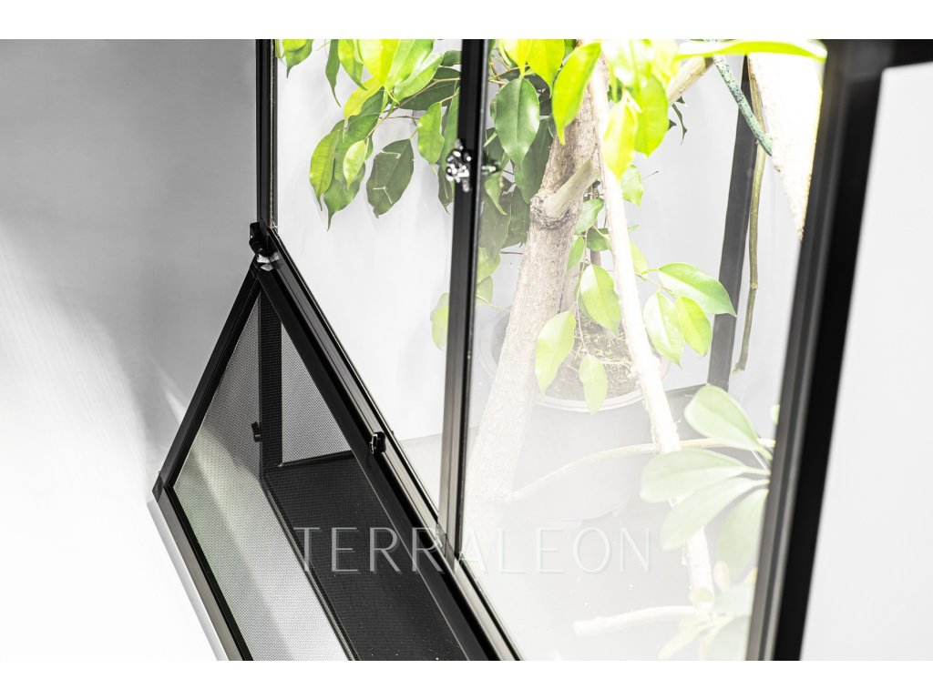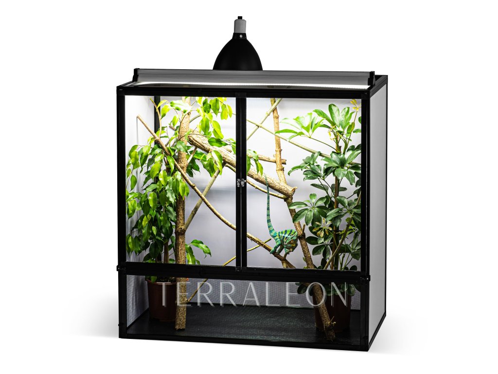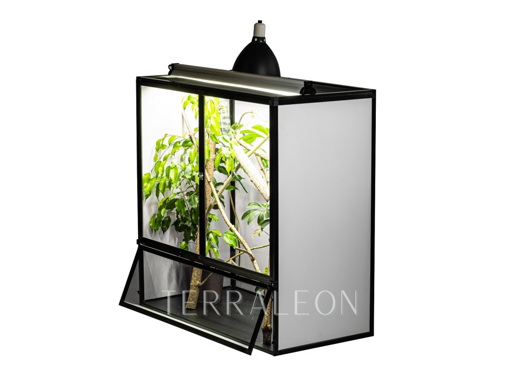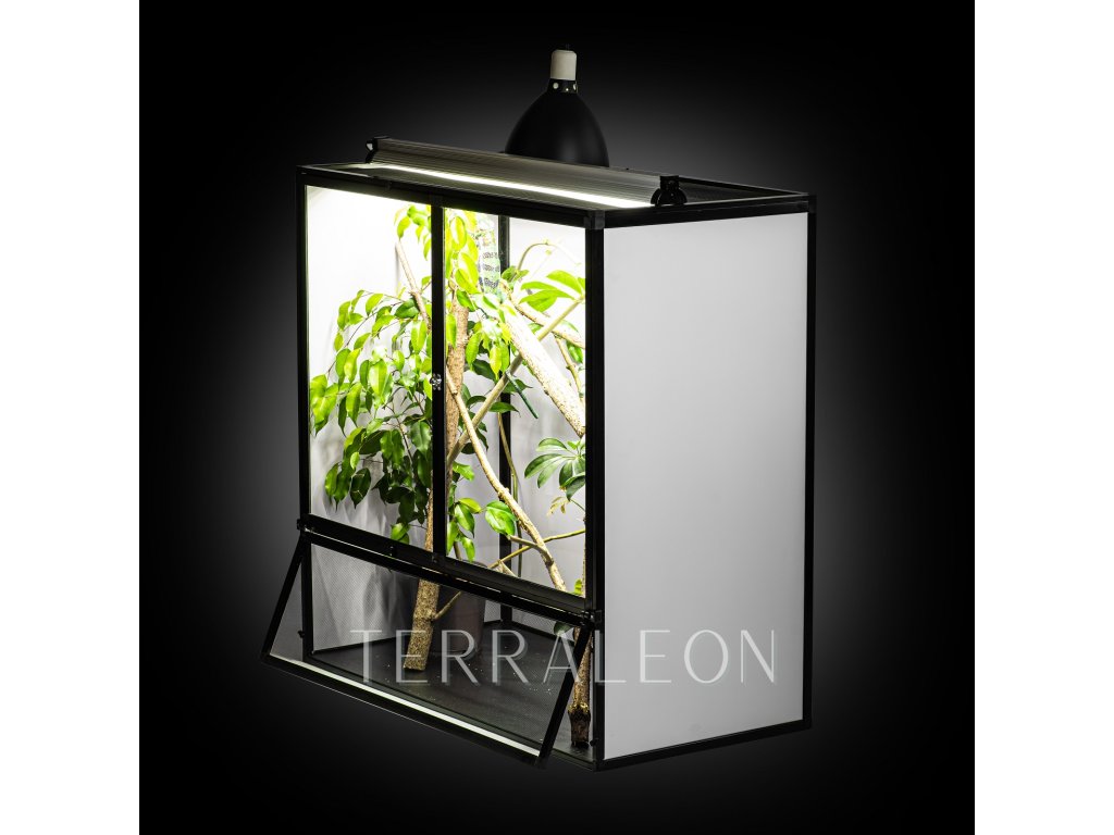 Terária se skládají z hliníkového rámu, pevného bílého PVC materiálu po bocích a zadní stěně a z transparentního plexiskla ve dvířkách. Dostatečnou cirkulaci vzduchu zajišťuje pletivo v celém spodním dílu pod dvířky a na stropě. Dno je z pevného PVC materiálu, na kterém je volně ložená podložka usnadňující čištění. Rám i pletivo jsou v černé barvě.